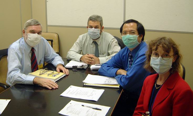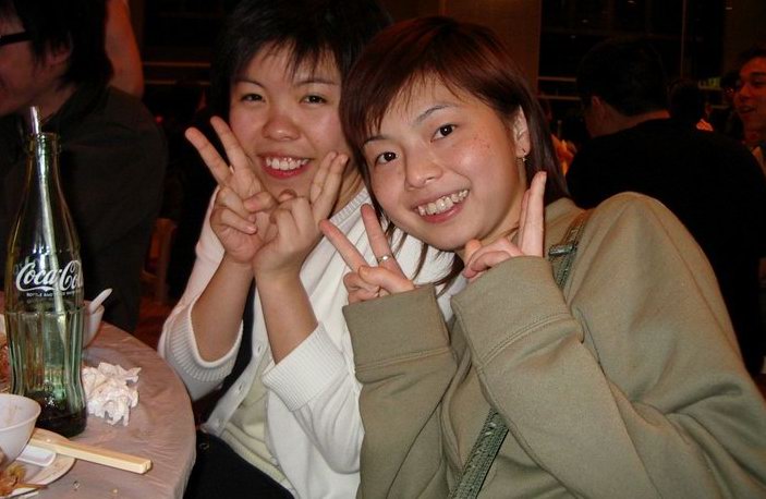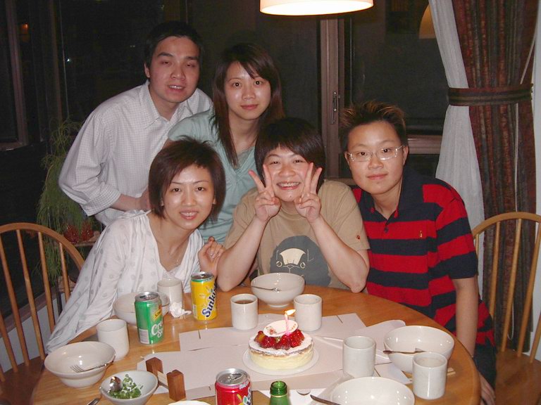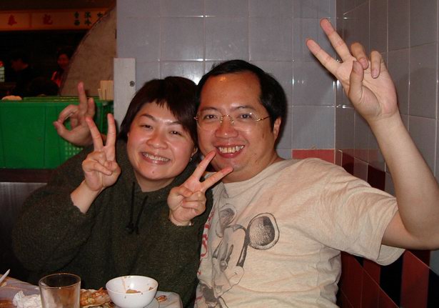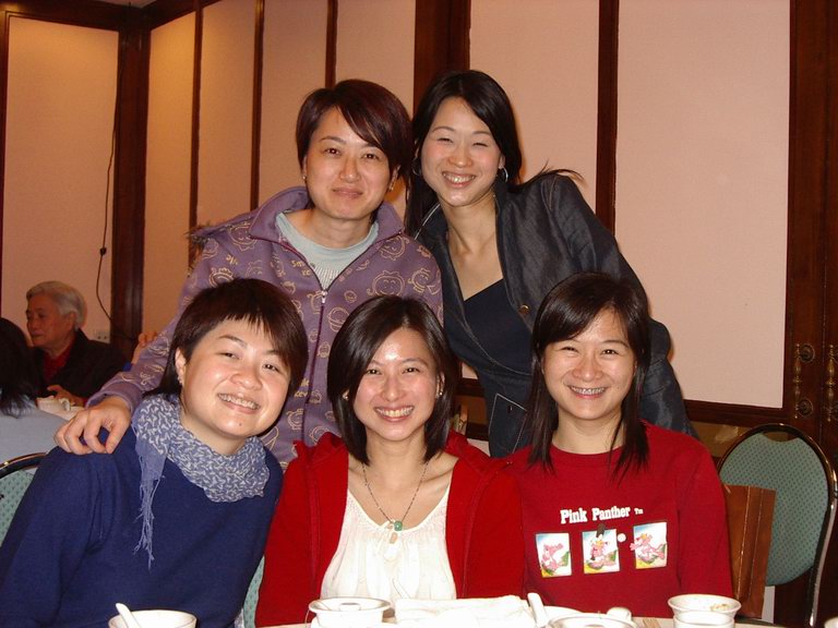 - Irene dining with her colleagues in Happy Valley: Iris and Elaine, Fanny and Sharon, Iris and Yat Lam, Irene and I (February 2003)